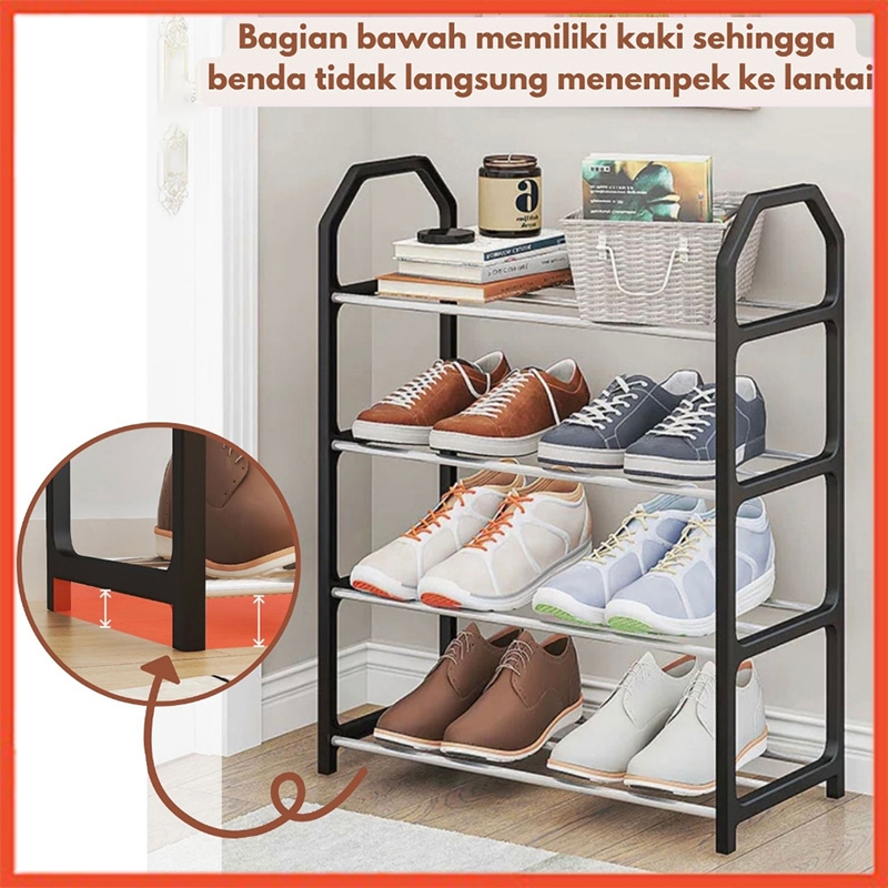 Hoptech - Rak Sepatu 4 Susun Serbaguna | Rak Sandal Portable Bahan Plastik & Steel Tube