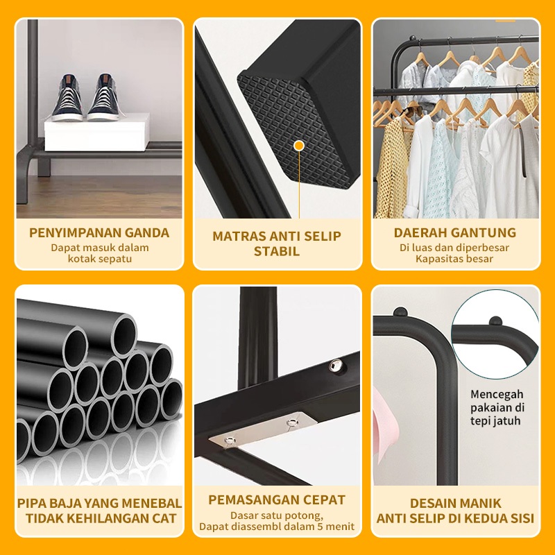 Stand Hanger Rak Gantungan Baju Stand Hanger Besi Gantungan Baju Besi Berdiri Display Butik Bazar Jemuran Pakaian Stand