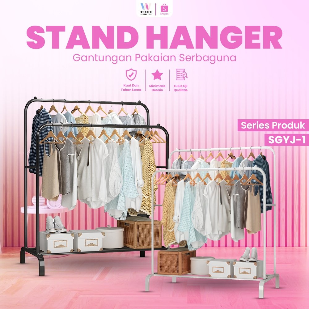 Rak Gantung Aesthetic Stand Hanger Stand Hanger Double Gantungan Pakaian Serbaguna -Wonderdekorasi