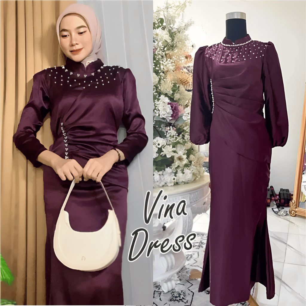 Vina Dress Bridesmaid Polos Pesta Kondangan Seragam Bridesmaids Duyung Baju Wanita Kekinian Warna Burgundy