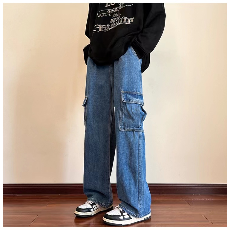 KeyBoy Celana Cargo jeans pria panjang cowok Korean style baggy pants kargo celana denim dewasa casual 2025
