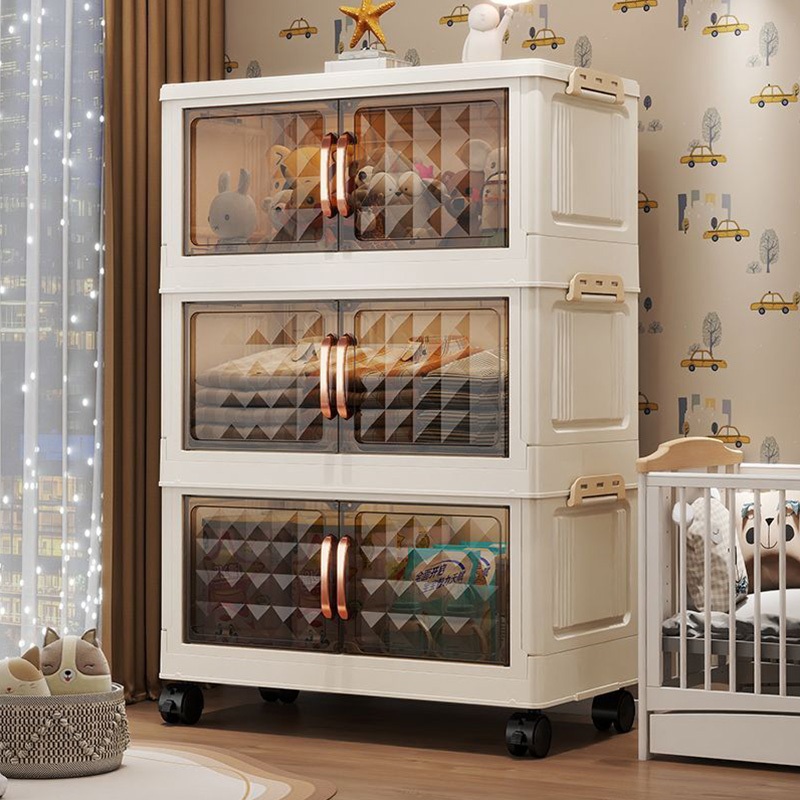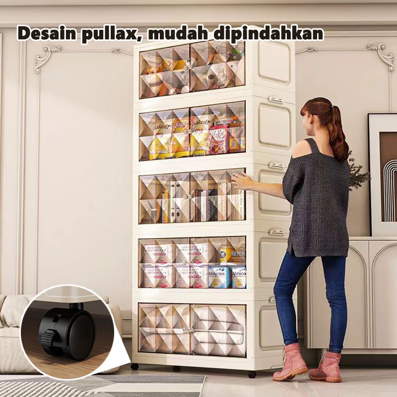 Rak Kabinet Susun Lipat(Lemari Lipat Tidak Perlu Dirakit)Rak Serbaguna Wardrobe Storage Lemari Pakaian Ekstra Besar Katrol Senyap
