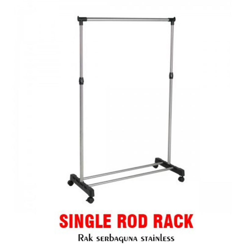 Stand Hanger Single Stainless Murah Rak Serbaguna Dengan 4 roda Jemuran Baju