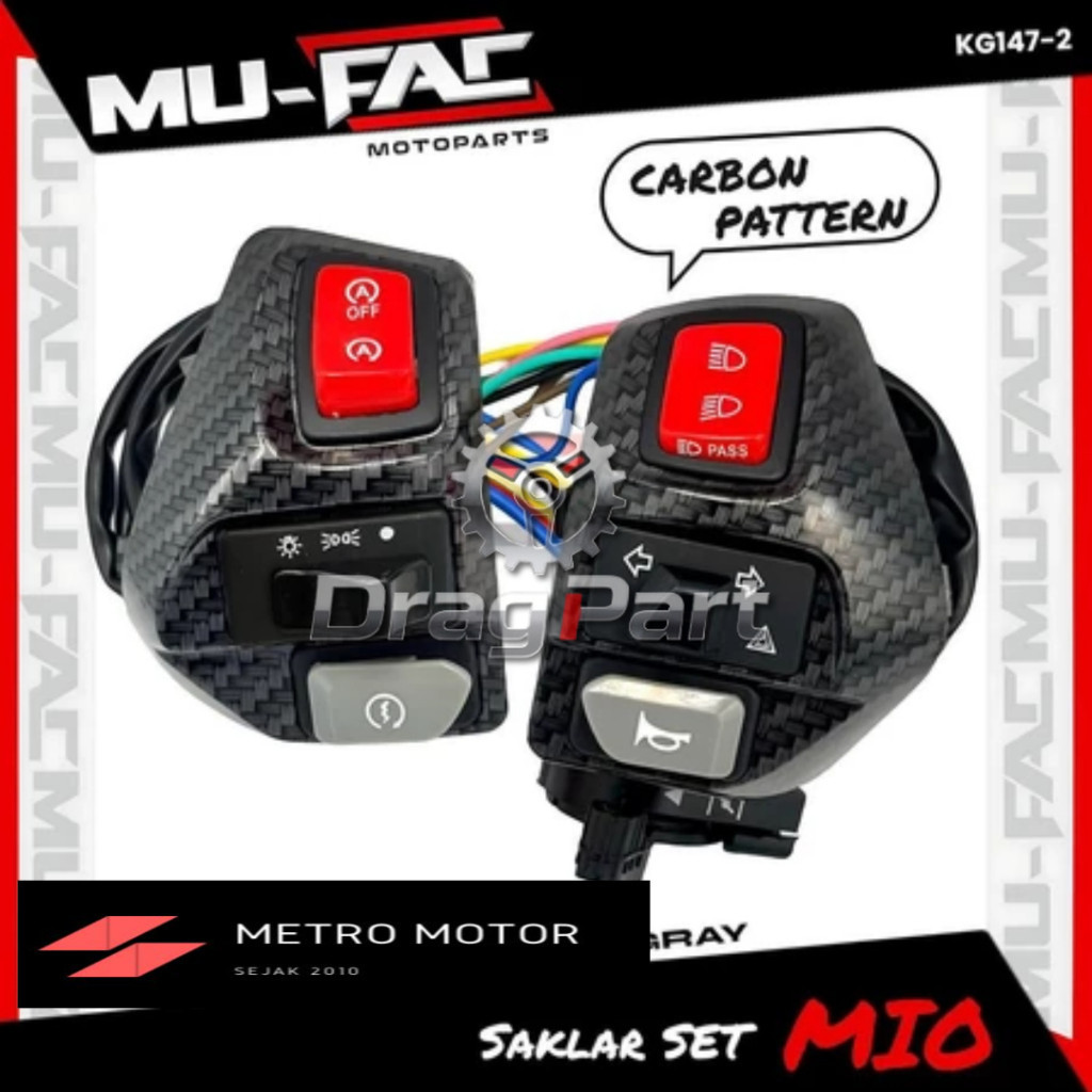 Saklar MIO VIETNAM KEVLAR KARBON[ 1 set kanan & kiri ] Jupiter Z Burhan / Jupiter MX Old&New / AEROX155 / Mio Smile / Mi
