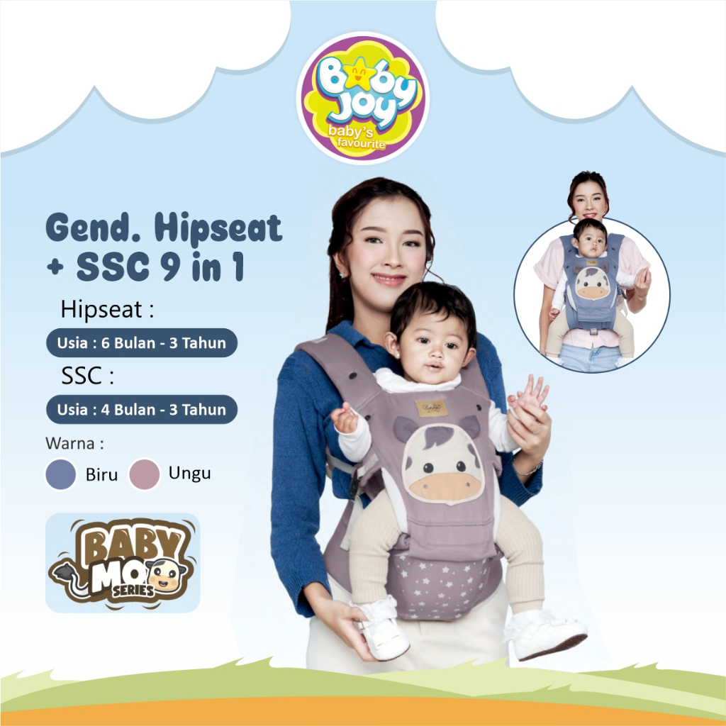 BABY JOY Hipseat + Gendongan SSC 9 IN 1 Baby Moo Series BJG3089
