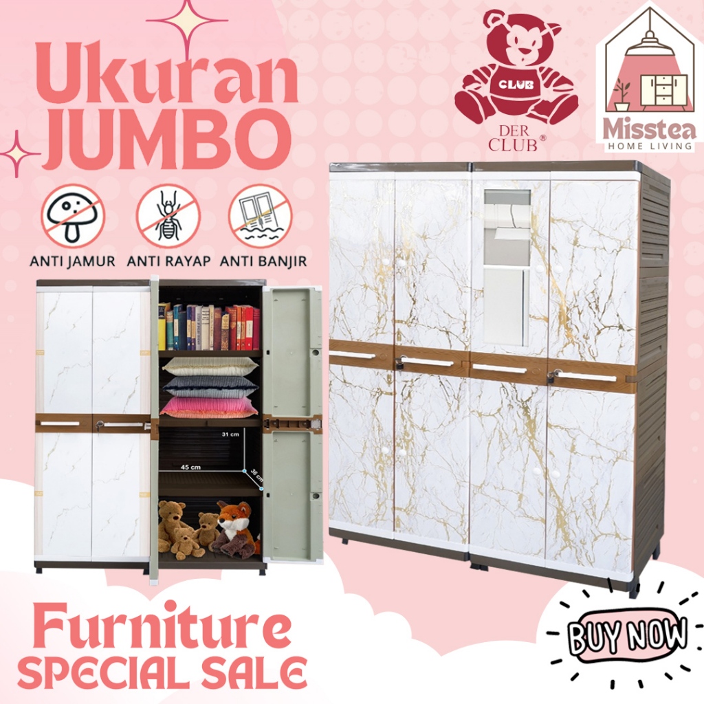 [READY STOCK] CLUB JUSTIN LEMARI PLASTIK JUMBO SERBAGUNA / LEMARI BAJU PAKAIAN / RAK DENGAN KACA DAN KUNCI
