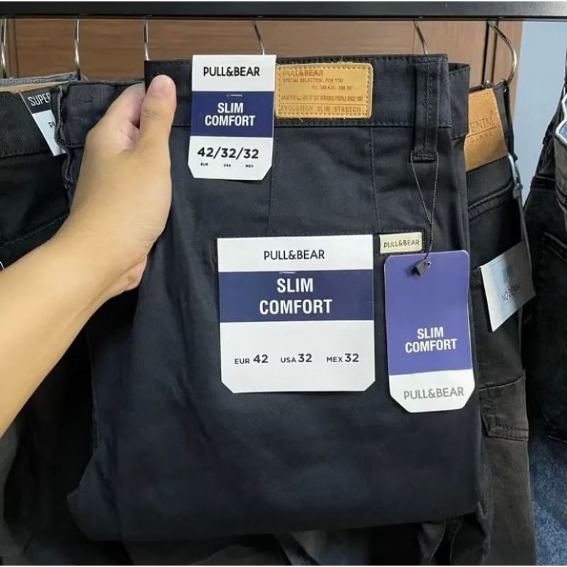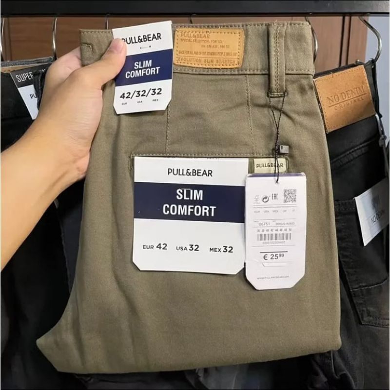Pull&Bear Celana Chinos Panjang Pria Slim Fit Formal Casual Bahan Stretch Premium