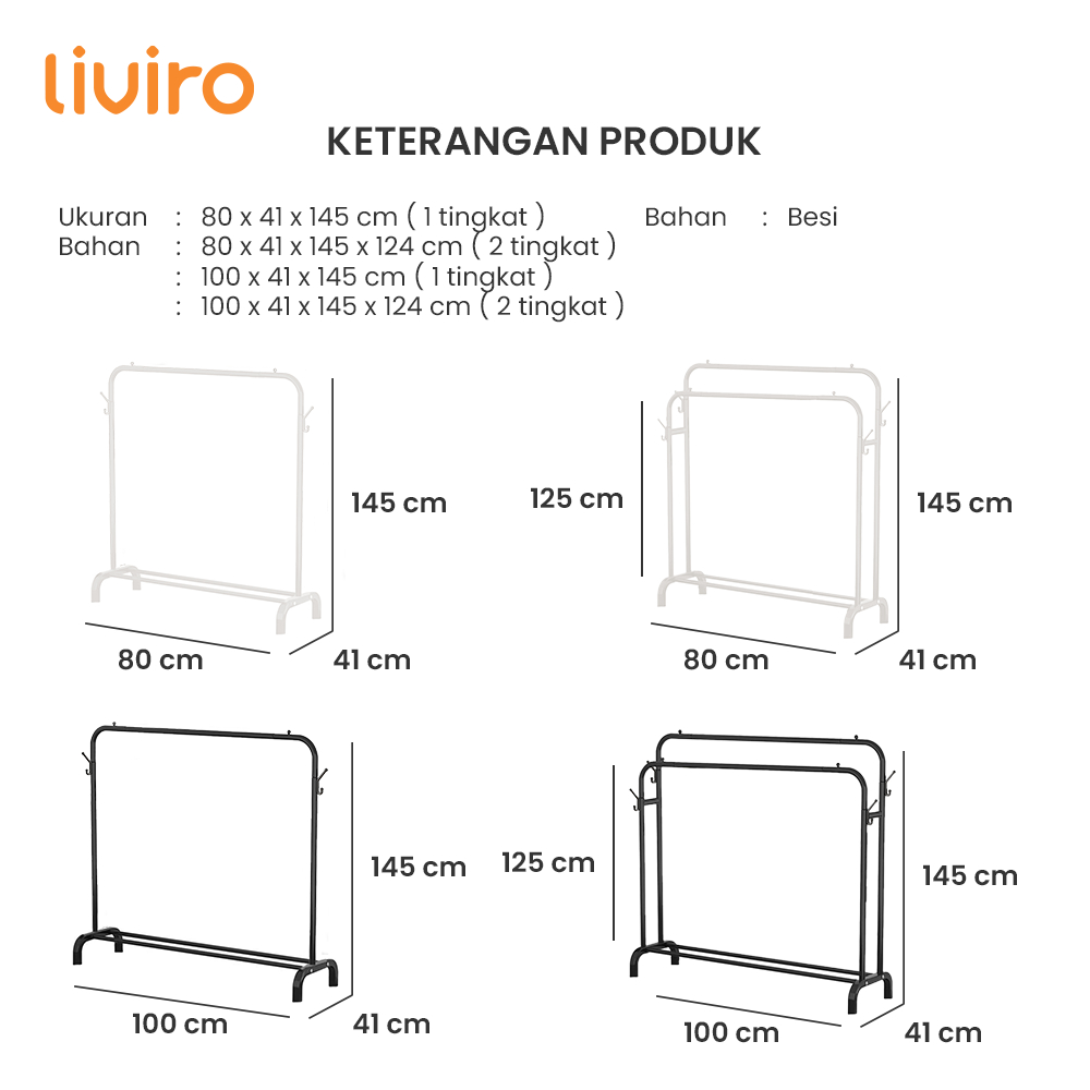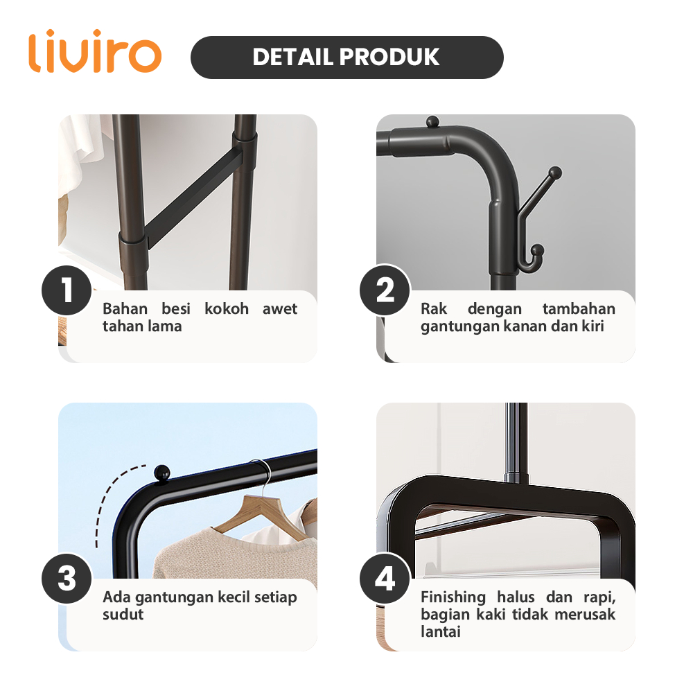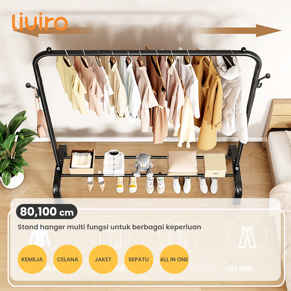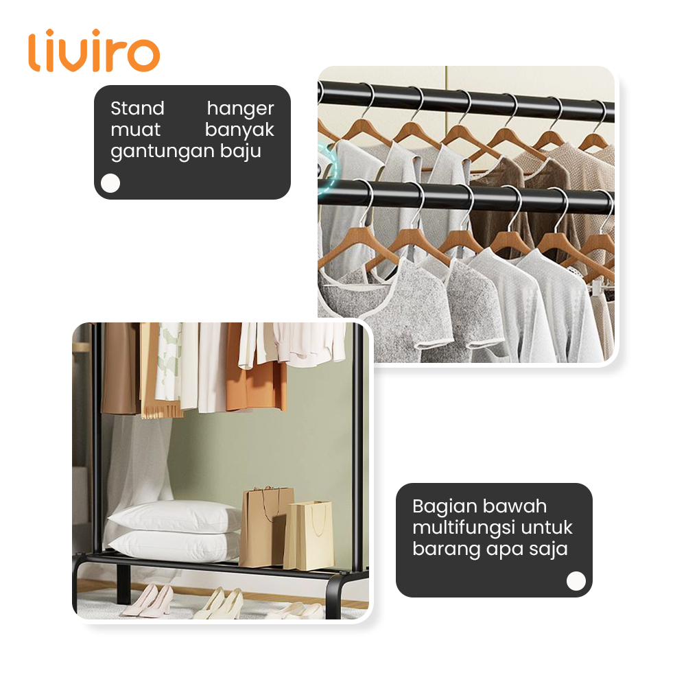 Liviro Stand Hanger Gantungan Baju Berdiri Bahan Besi Tempat Gawang Jemur Serbaguna Premium Quality