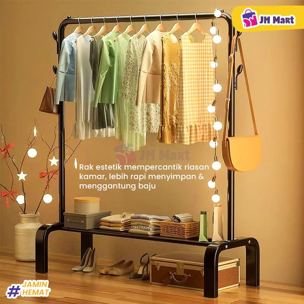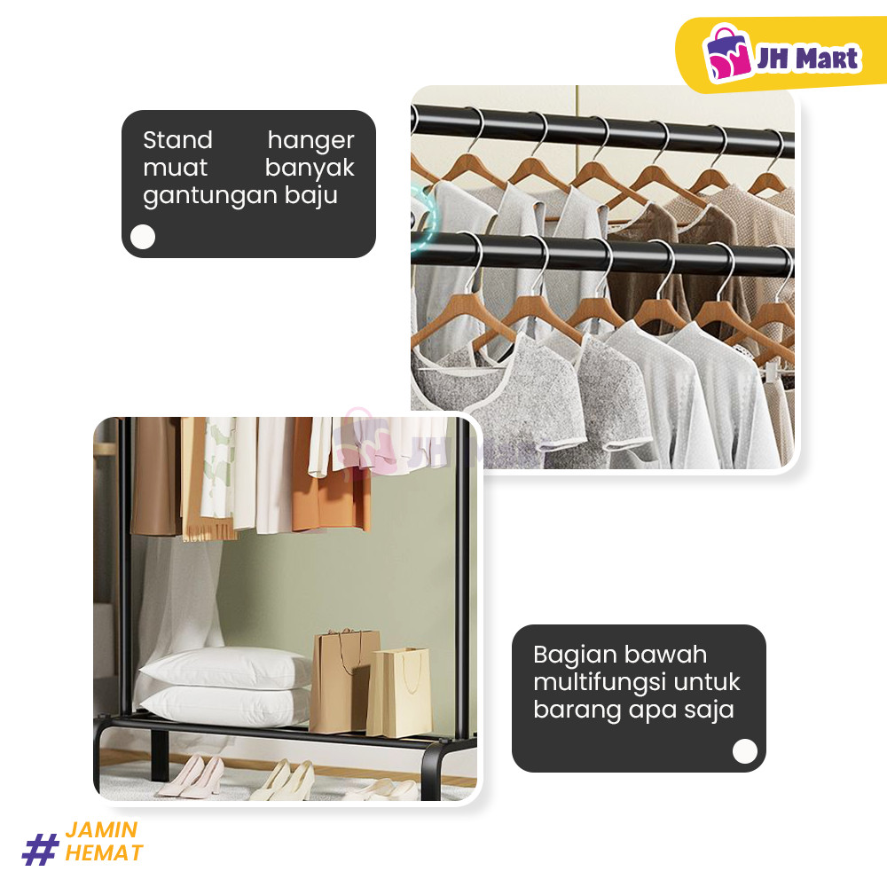 JHM - Stand Hanger Serbaguna Gantungan Baju Berdiri Gawangan Rak Jemuran Pakaian Bahan Besi Premium