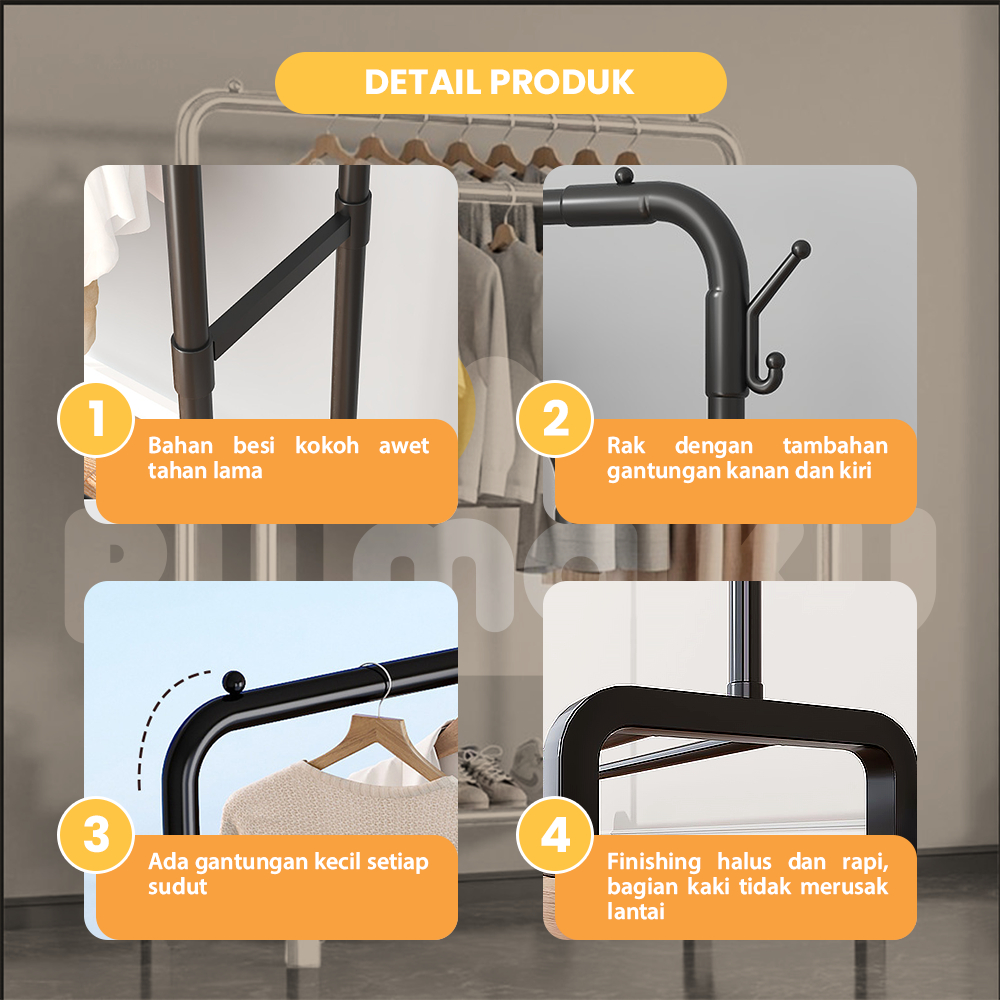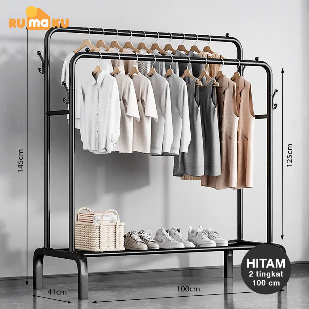 RMK Stand Hanger 2 Layer Gantungan Baju Berdiri Bahan Besi Gawangan Pakaian Serbaguna