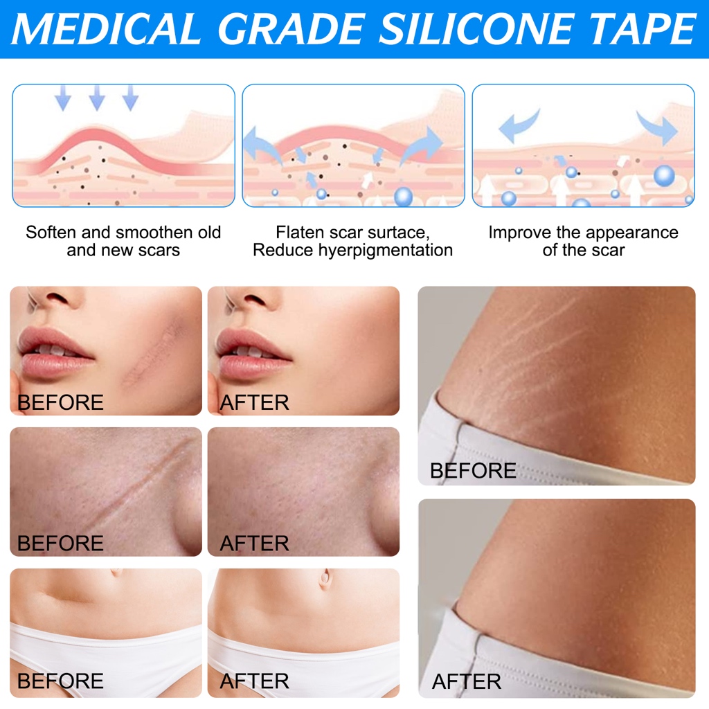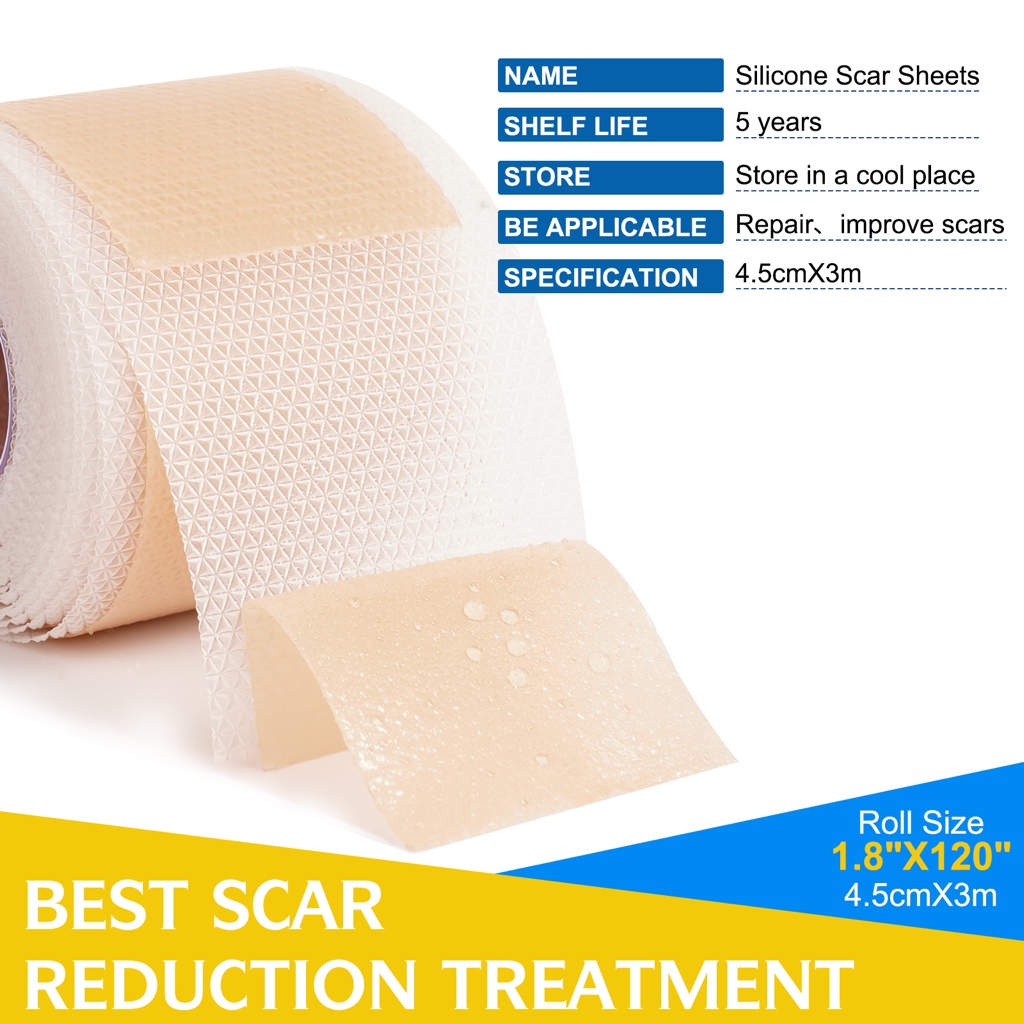 Al'iver Silicone Scar Sheets Rolls Size 1.8"x120"(4.5cmx3m) Plester Handsaplast silicone kulit