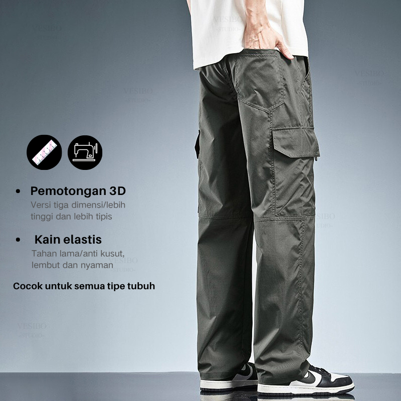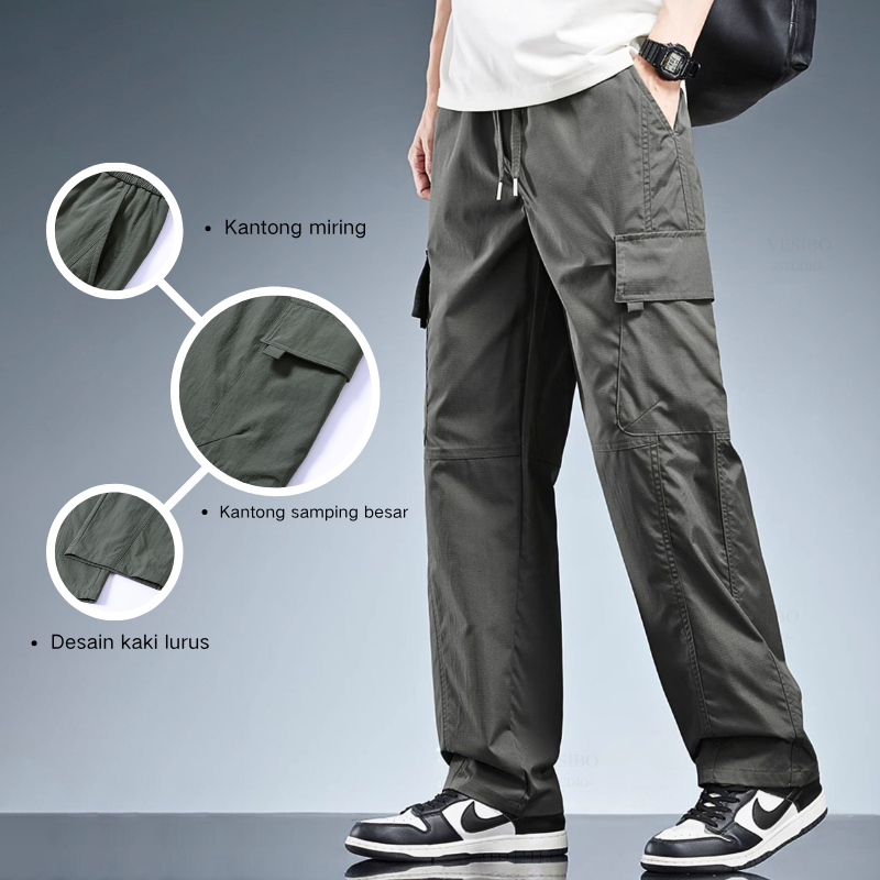 Celana Cargo Panjang Pria Korean Style Oversize Banyak Kantong Fashion Celana Pria Casual Cargopants