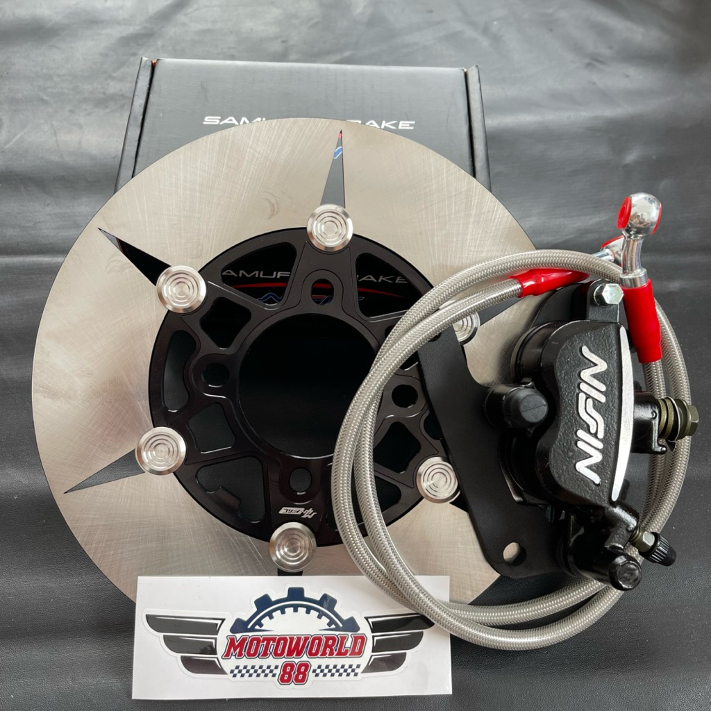 PIRINGAN DISC CAKRAM DEPAN 220MM + KALIPER SAMURAI 2PISTON NIZZN + SELANG REM 95CM CARBON + BREKET MIO SPORTY / VARIO BE