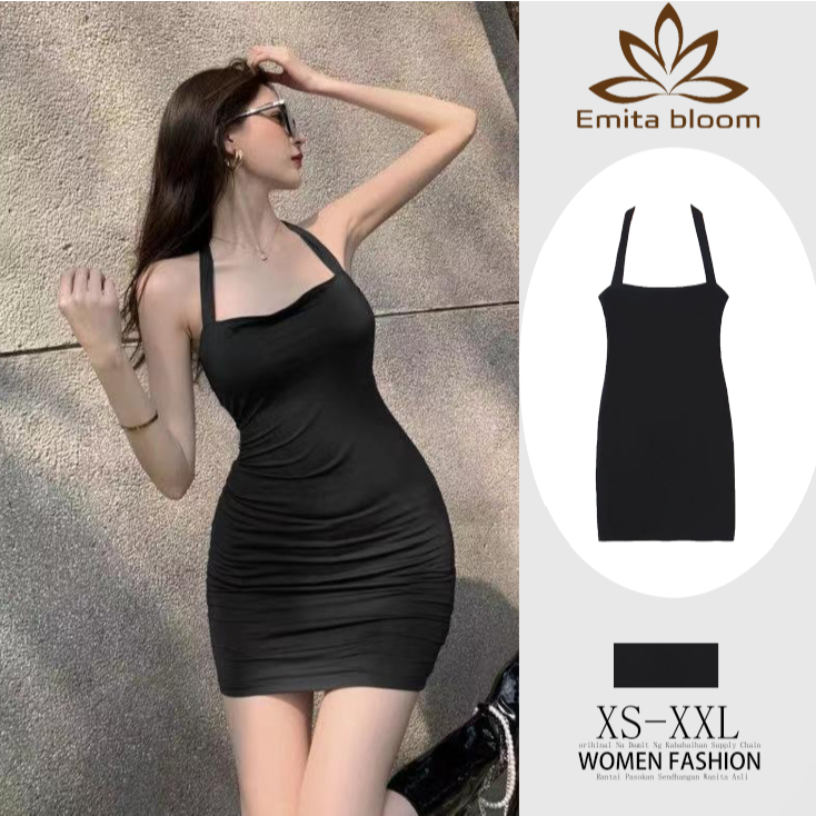EMITA BLOOM sexy black mini dress hitam press body backless wanita party dress korean style baju gaun pesta mewah elegan