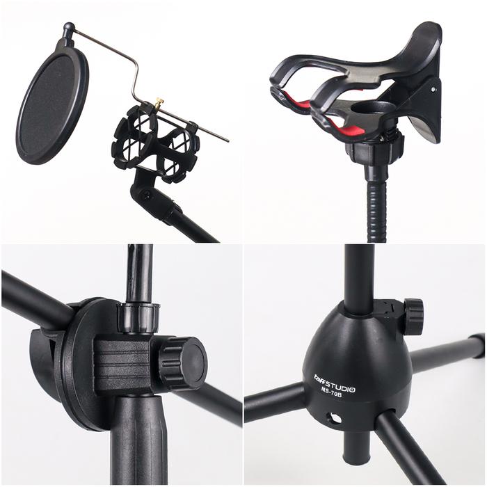 Taffstudio MS-70B - Stand Mikrofon Microphone dgn Holder Smartphone dan Pop Filter Accessories