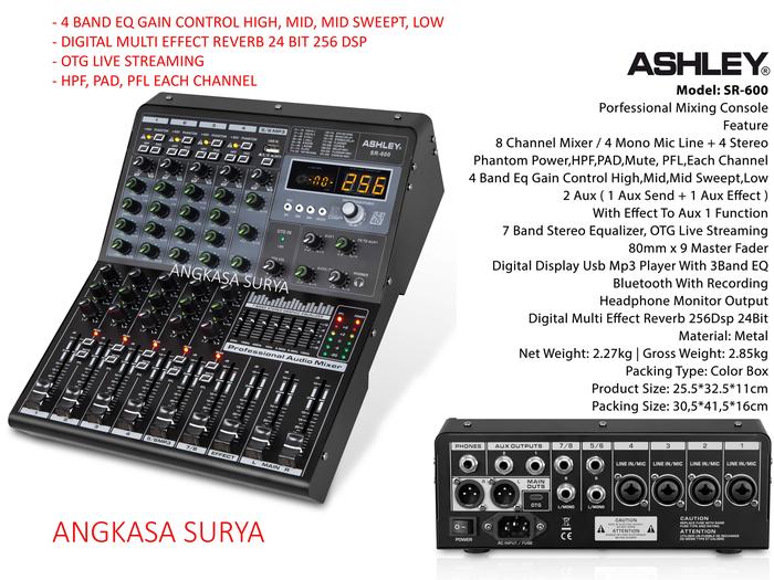 Mixer Ashley SR600 Original / Mixer Audio Ashley SR 600 Original 4 Tone, PAD , HPF, PFL Reverb 256