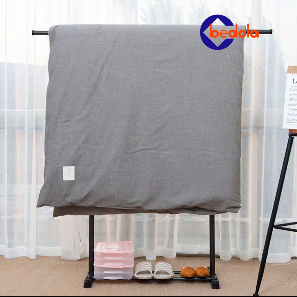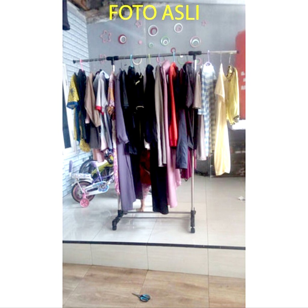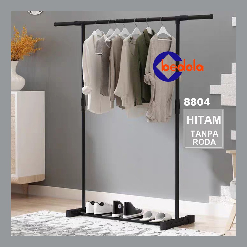 Stand hanger single hitam rak gantungan baju serbaguna dengan 4 roda