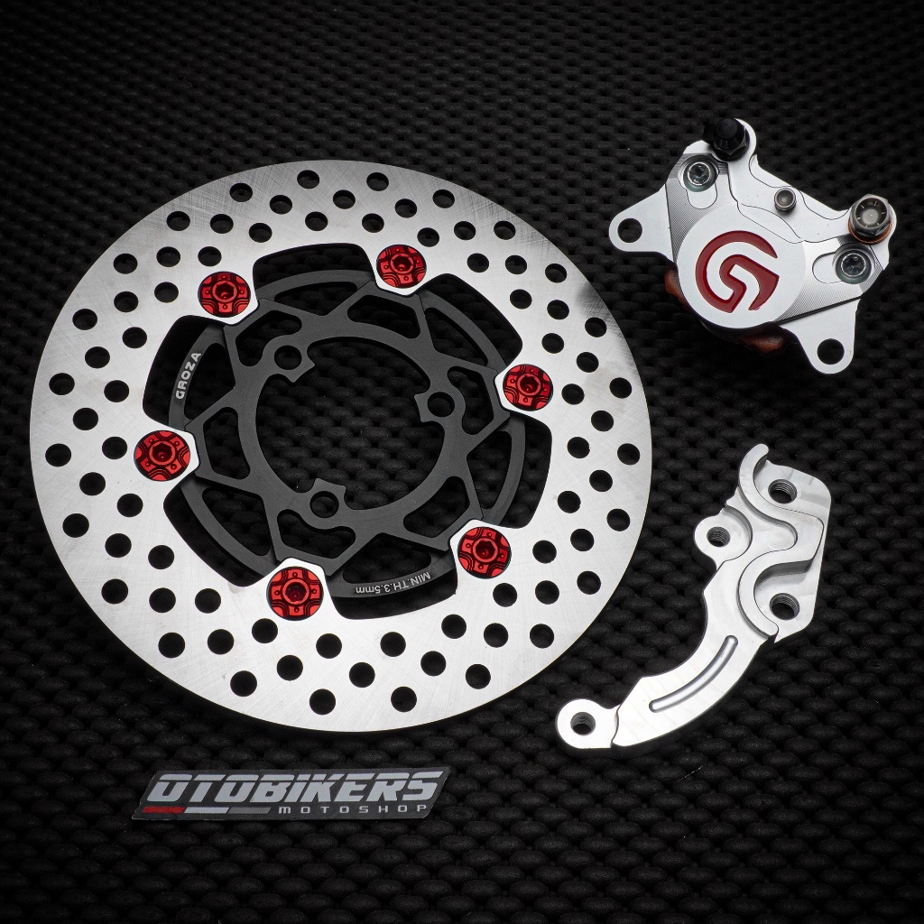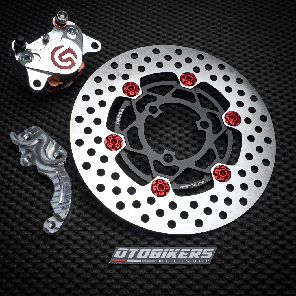 (PAKET) Piringan Cakram Depan GROZA 220 mm Grand Filano set Kaliper DAITAN 2P Breket CNC
