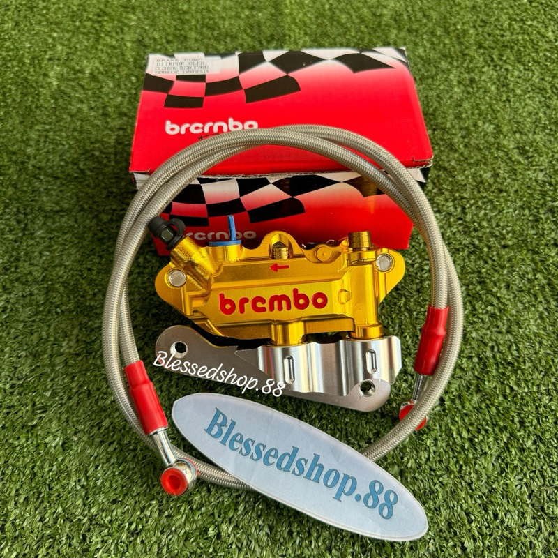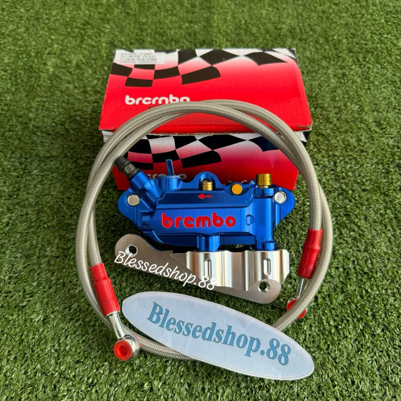 PAKET KALIPER MONOBLOK KIRI 4 PISTON + 2 BAUT KRUCUT + SELANG REM 95CM + BREKET 220MM KALIPER KIRI BEAT VARIO SCOOPY GEN
