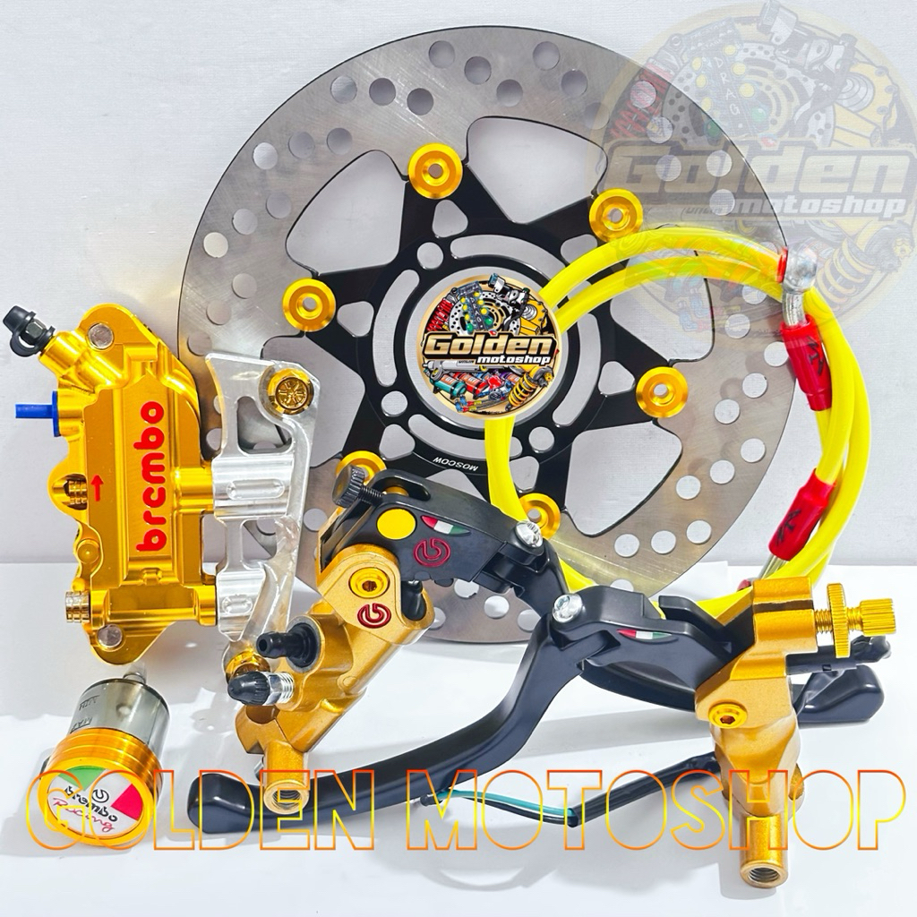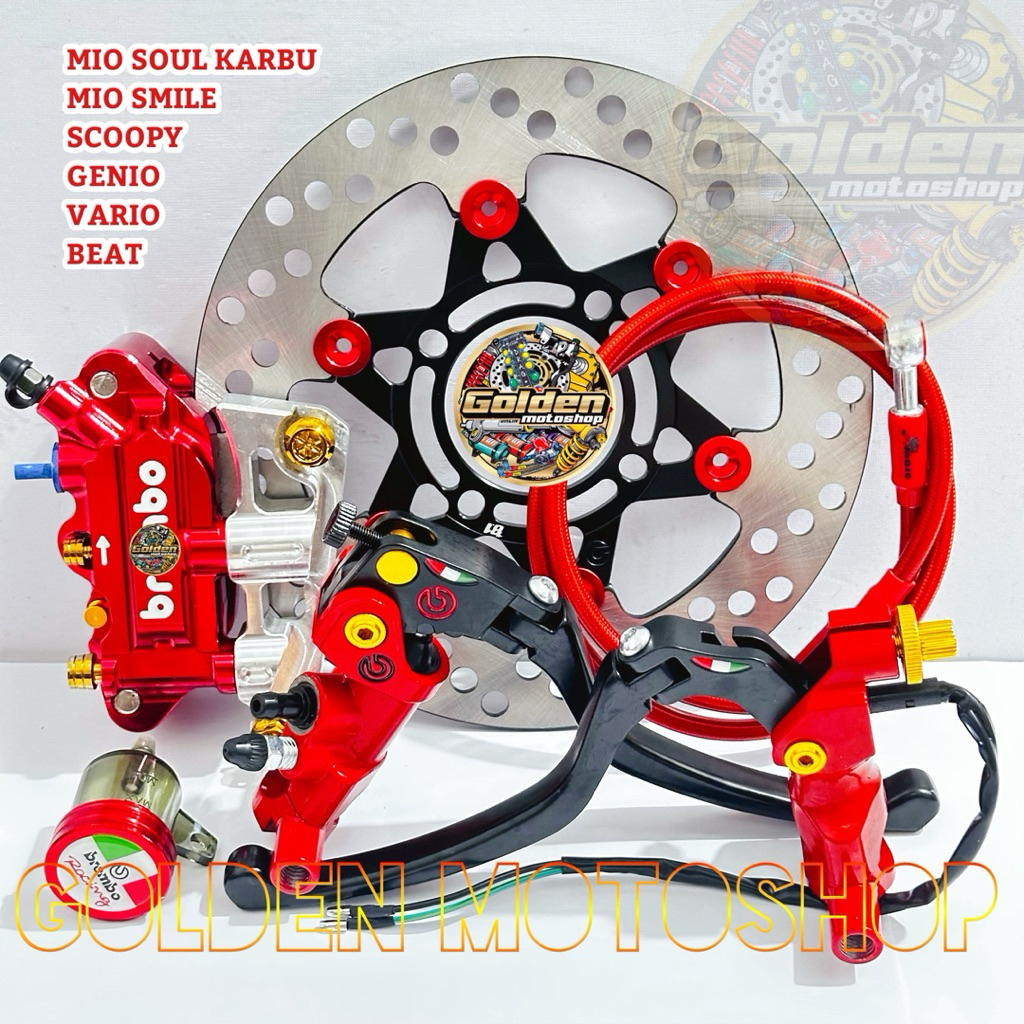 Paket pengereman 4 piston bremb kaliper kanan Beat ,Vario ,Scoopy ,Genio uk.220mm Master rem + kaliper + Breket +Piring