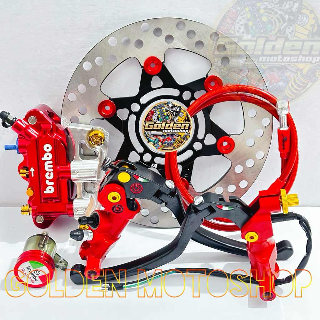 Paket pengereman 4 piston bremb kaliper kanan Beat ,Vario ,Scoopy ,Genio uk.220mm Master rem + kaliper + Breket +Piring