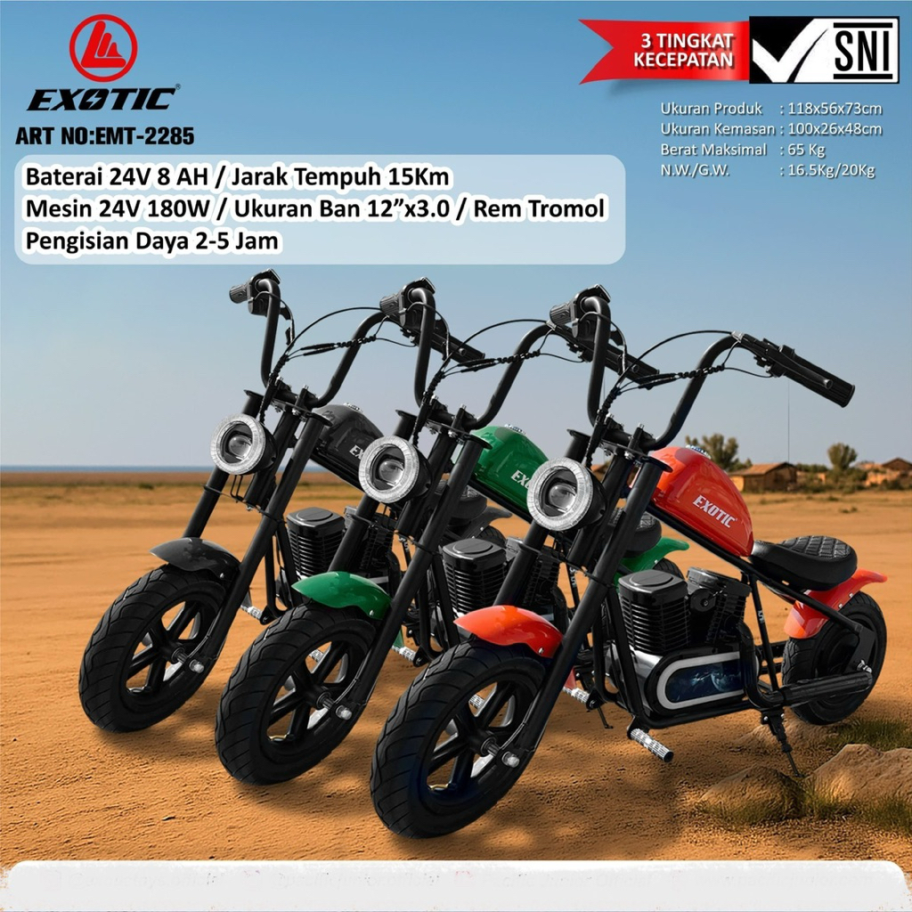 Motor Aki Anak Model Harley Exotic EMT 2285 Moge Besar Listrik Cas Casan