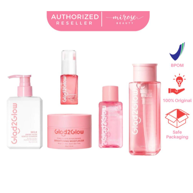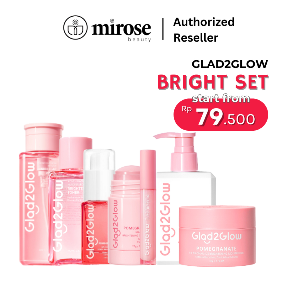 [1 PAKET] Glad2Glow Mencerahkan Bright Glowing Set | Serum | Moisturizer | Pomegranate Clay Stick | Lip Serum | Milk Amino Face Wash