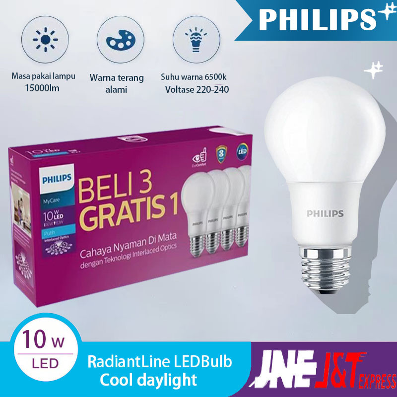 Lampu led philips 【3 gratis 1】Paket 14.5 Watt 8W 12W 6500K 【Cahaya nyaman】 low loss rumah Led Bulb