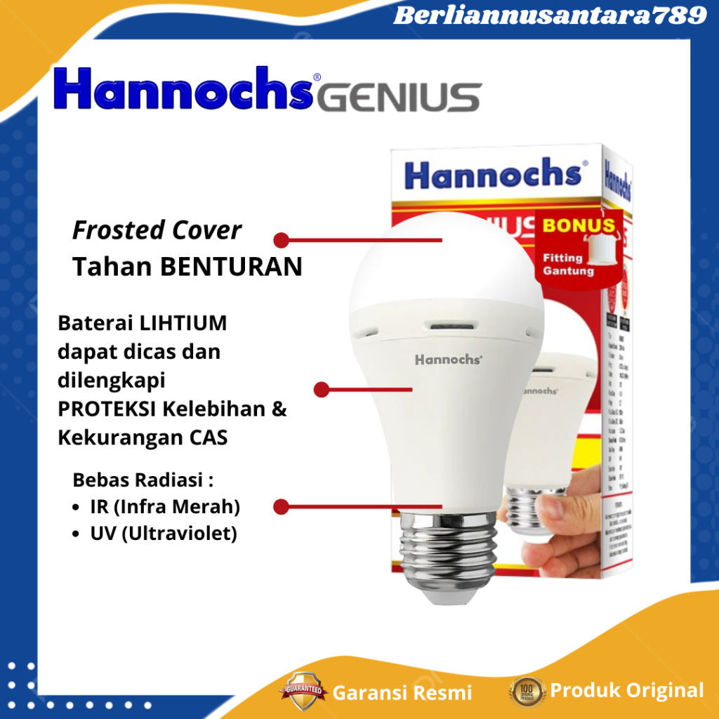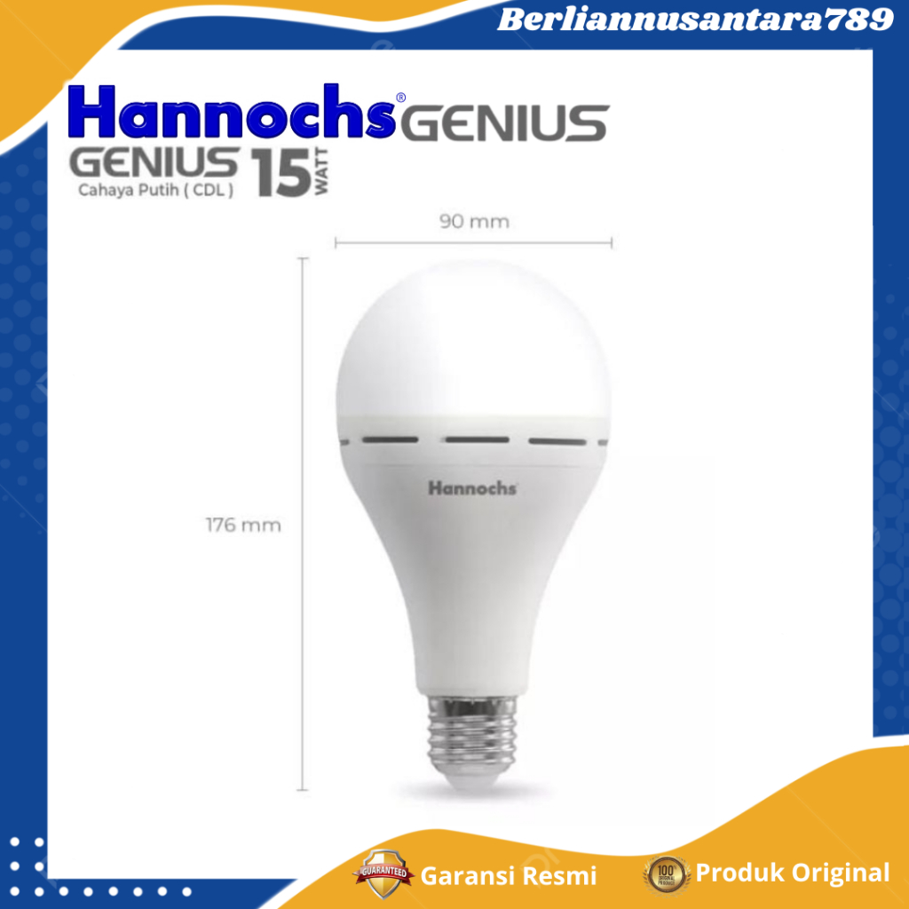 Hannochs Bohlam Lampu Emergency LED Genius 15WATT Cahaya Putih Cool Daylight - GARANSI RESMI