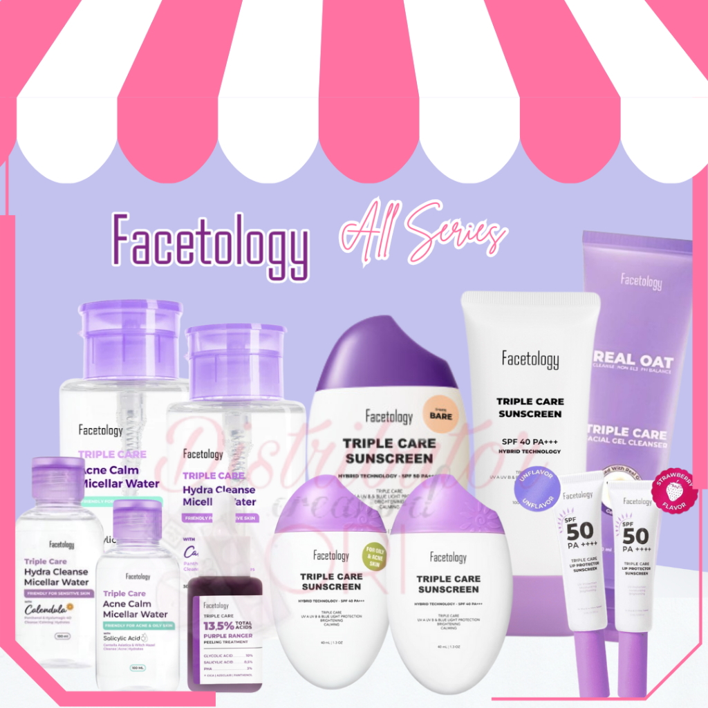 FACETOLOGY TRIPLE SUNSCREEN KRIM PENCERAH WAJAH / FAL WASH SABUN CUCI MUKA / micellar / lip protector / Tinted / Acne / Peeling