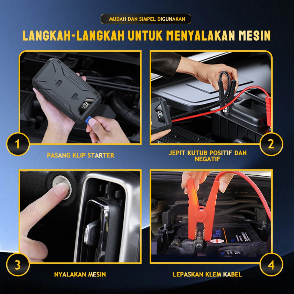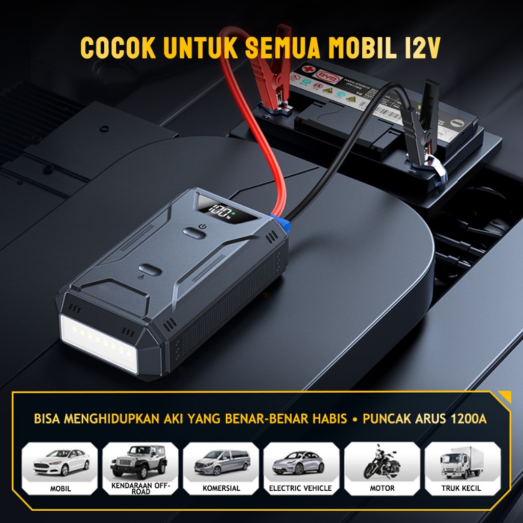 KMILES Jumper Aki Mobil Portable 6000mAh Dengan Power bank Dan Lampu Led Jump Starter Mobil 12V