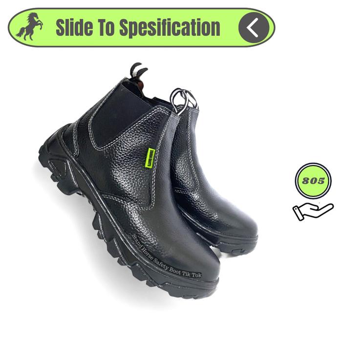 Safety Shoes Pria Wanita STAND HORSE 805 Ujung Besi Kulit Sapi Semi Boots