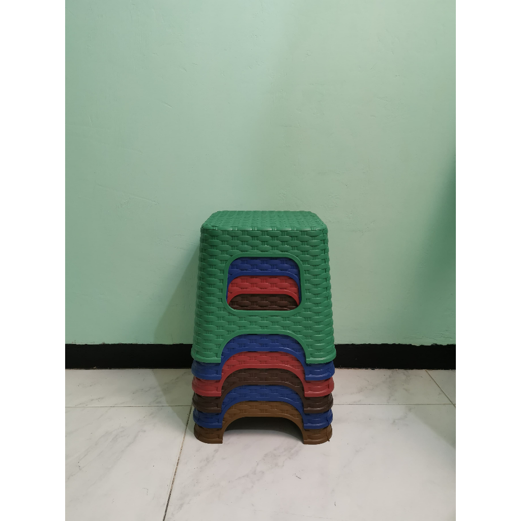 Furniplas - (Paket hemat Isi 6/12) Kursi Bakso Plastik Teras Bangku Jongkok Kecil Pendek Premium Plastic Warna Motif Rotan Ukuran 28 x 28 x 26 cm - Mascot 21