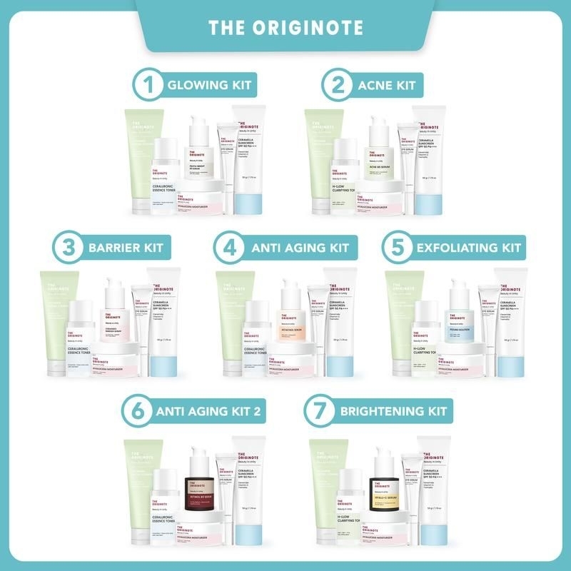 ()The Originote SPECIAL BUNDLE 6in1 KIT : ACNE KIT, GLOWING KIT, BARRIER KIT, ANTI AGING KIT, EXFOLIATING KIT dan BRIGHTENING KIT