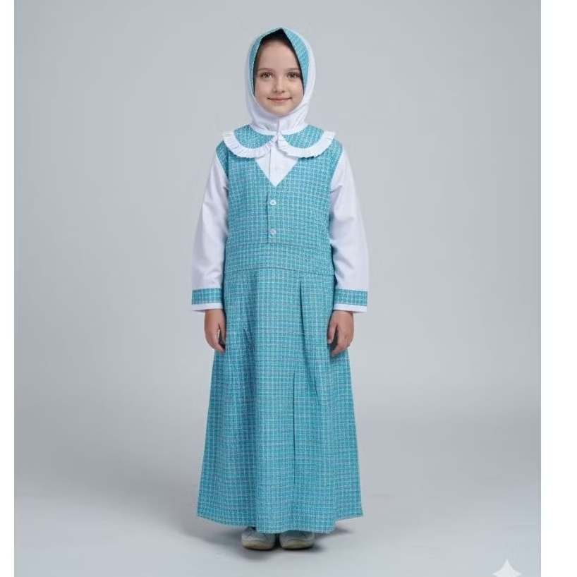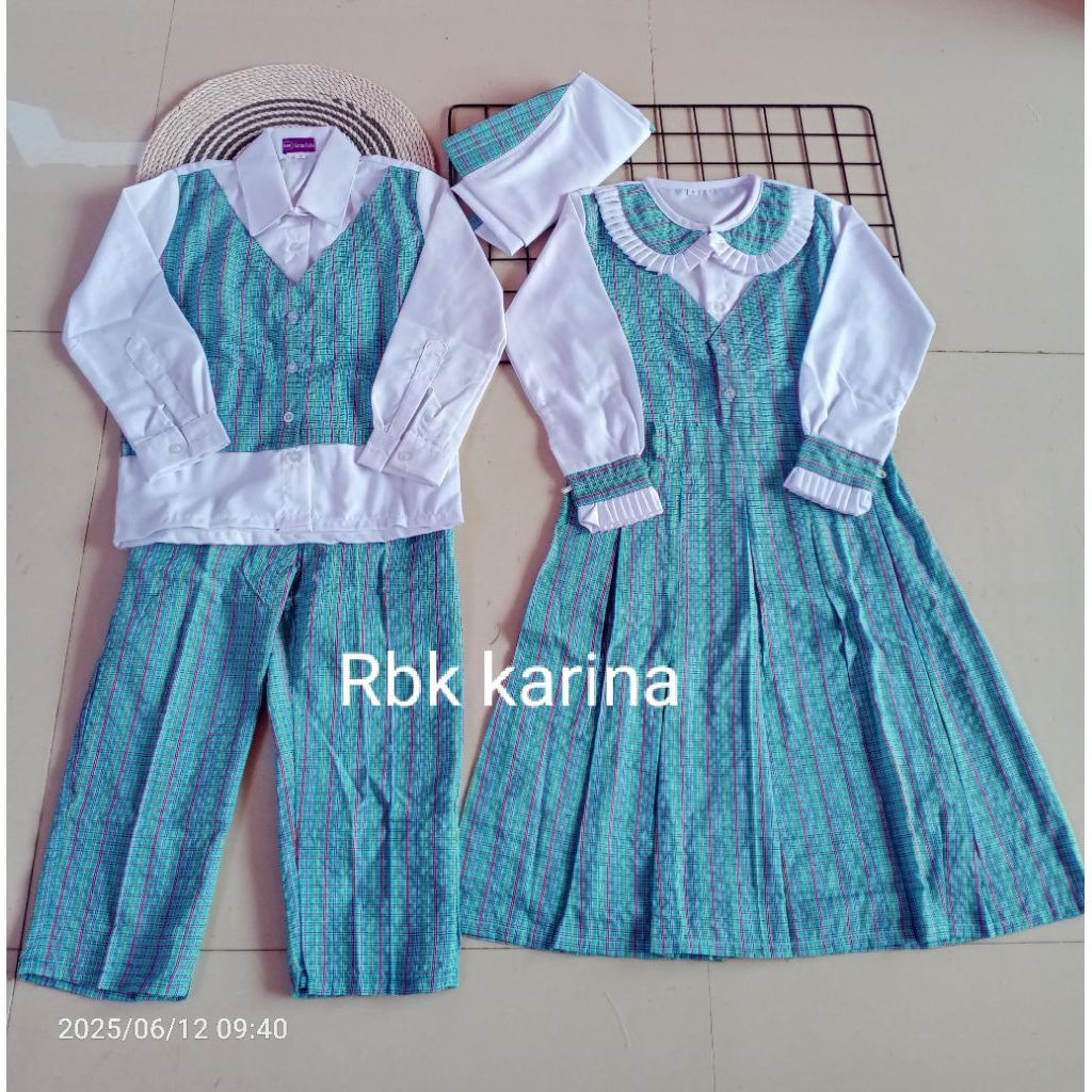 Seragam TK PAUD KOTAK KOTAK BIRU PUTIH COWOK DAN CEWEK FREE HIJAB