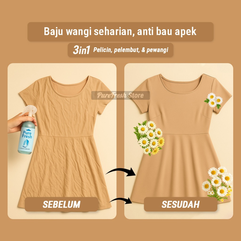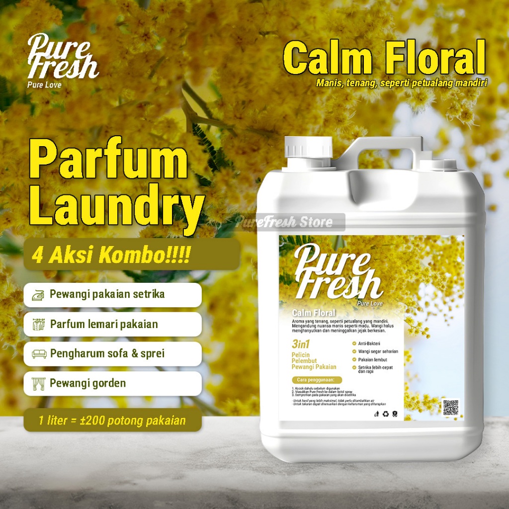 Parfum Laundry Pewangi Pakaian 3in1 Pure Fresh 1 Liter Pelicin Pelembut Setrika Baju Calm Floral