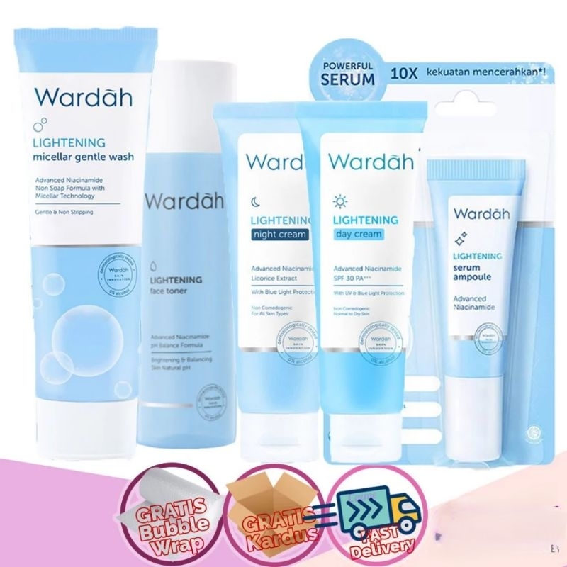 [5 PCS] WARDAH Paket Lightening Series Micellar Gentle Wash 50ml | Serum8ml | Toner | Day Tube paket 5 kecil