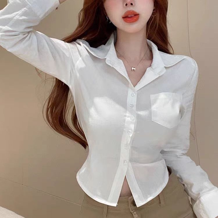 YURUMA Kemeja JK Atasan Wanita Lengan Panjang Ramping Pinggang Pendek Kemeja Hitam