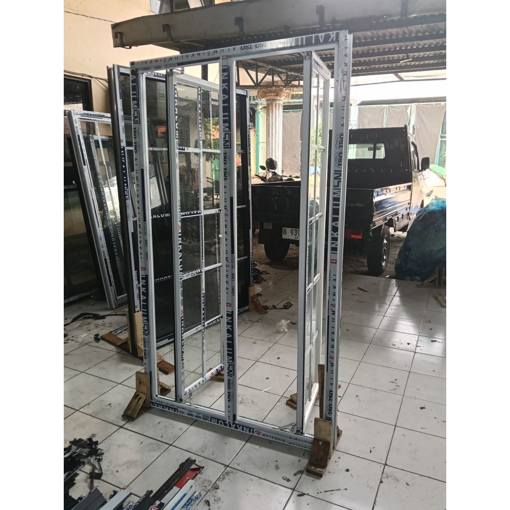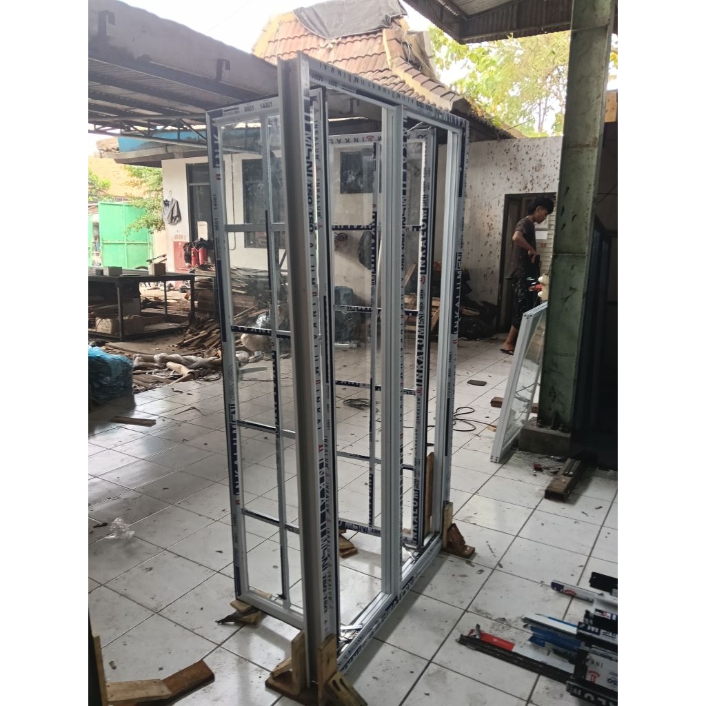 jendela aluminium swing 2 daun + kaca 5mm kusen 3" + Lis oranamen. ukuran L 100 T 120 L 100 T 150 L 100 T 160 L 120 T
