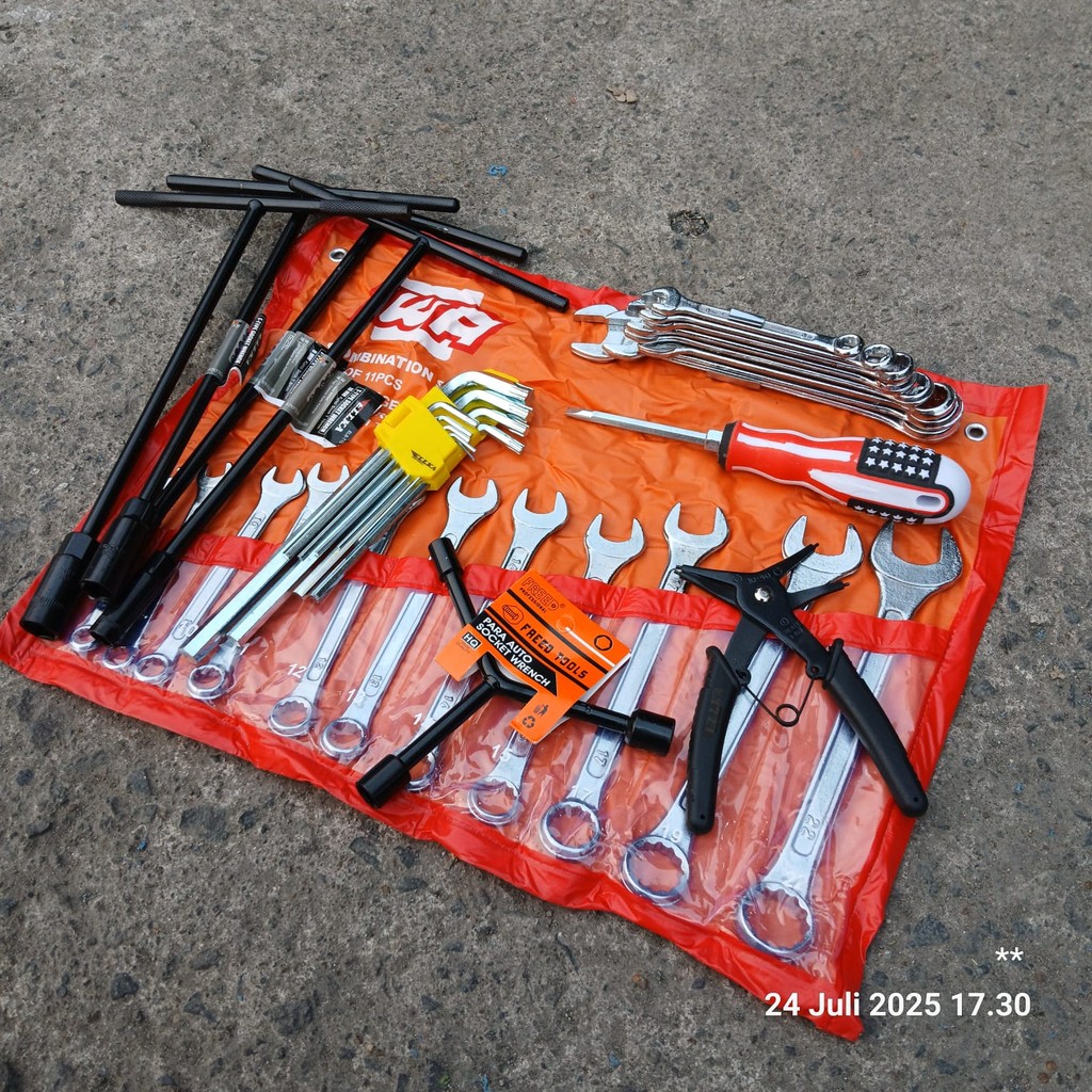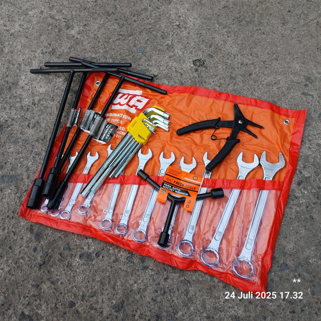 Murah Paket Kunci Ring + Kunci Pas Set + Kunci Sok Set 40 pcs + Kunci L Panjang + Obeng