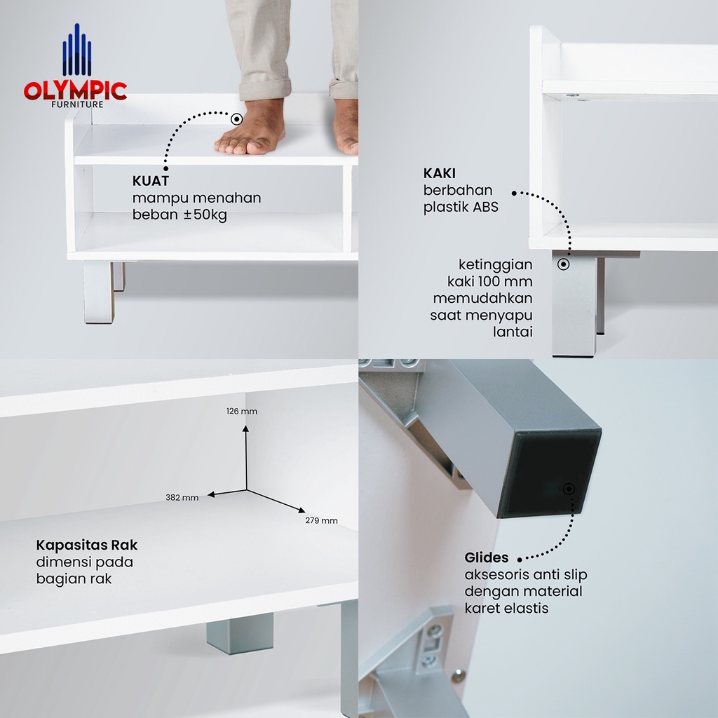 Rak TV/Meja TV Olympic/RTV Rubik 02 Minimalis Putih KUAT KOKOH