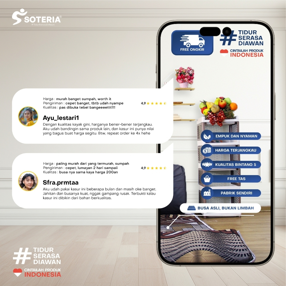 Soteria Kasur lipat Portable Bonus Tas Travel / Matras Busa Soteria Original Premium Anti Kempes / Travel Matress Roll Gulung Dengan Bantalan Easy To Carry Garansi Resmi Cloud Roll Series