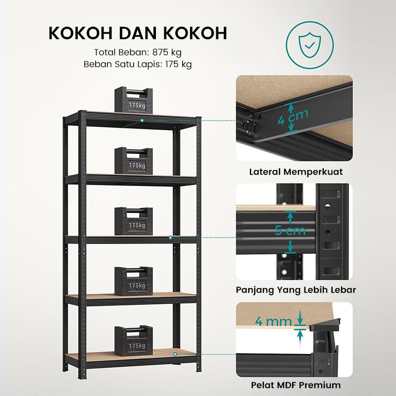iHOME Rak Susun Besi Rak Besi Siku 5 Susun Rak Besi Susun Serbaguna Rak barang 3/4/5 tingkat
