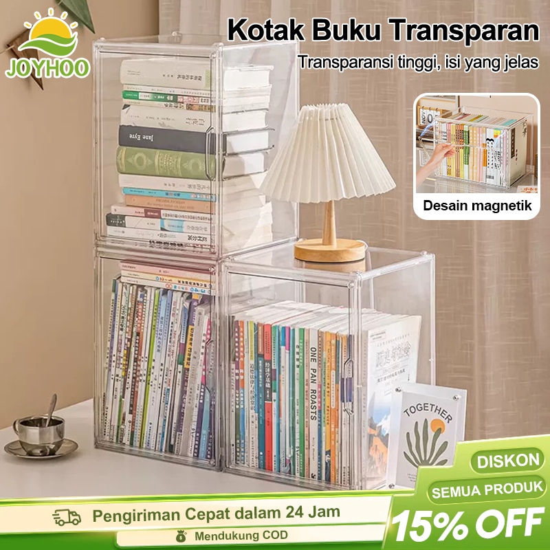 【JOYHOO】Kotak Penyimpanan Akrilik Transparan Kotak Pajangan Penyimpanan Buku Majalah Album Serbaguna Rak Buku Desktop Anti Debu