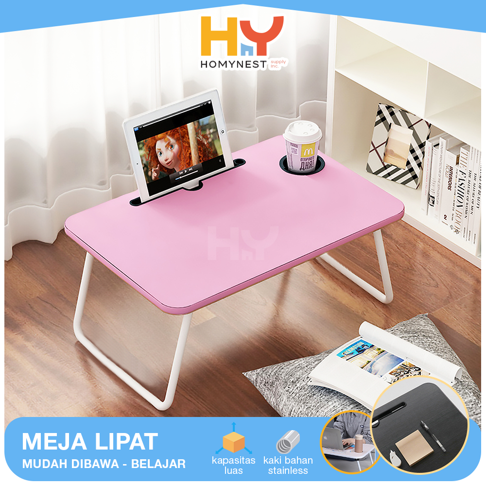 HOMYNEST Meja Laptop Lipat Portable Meja Belajar Kayu HPL Kaki Besi Kokoh Berkualitas