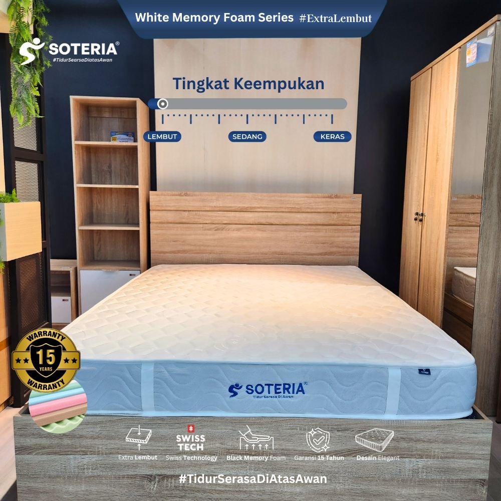 [PROMO AFFILIATE] Soteria Kasur Busa Roll Extra Plush / Matras Matress Roll Tebal 10/15/20 cm / Kasur Portable Anti Kempes Memory Black Foam Plush White Series [GARANSI RESMI]