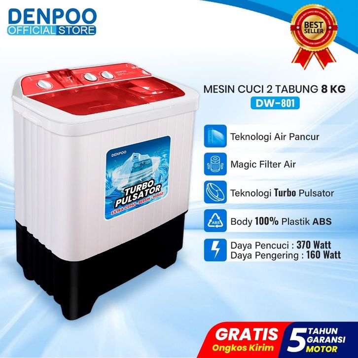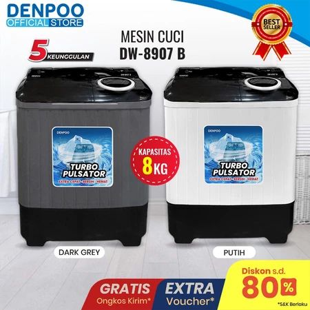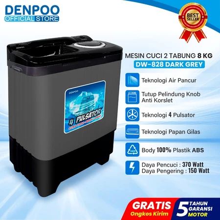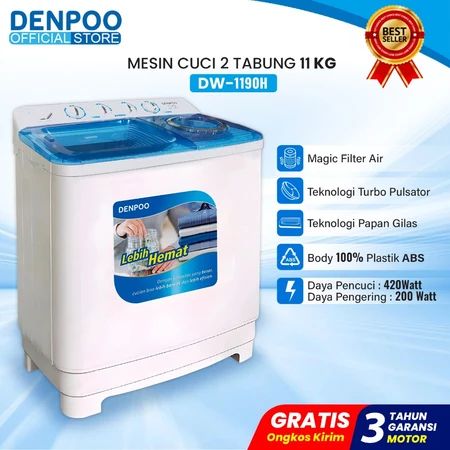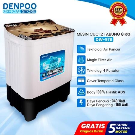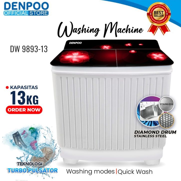 DENPOO MESIN CUCI 2 DUA TABUNG KAPASITAS 13 11 8 KG TWIN TUB TWINTUB TOP COVER TEMPERED GLASS