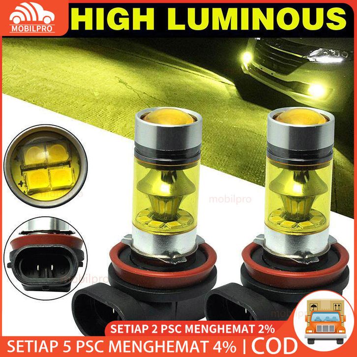 2pcs Lampu Kabut Led H11 H8 4300K 100W 1500LM Super Terang Warna Kuning 12V-24V