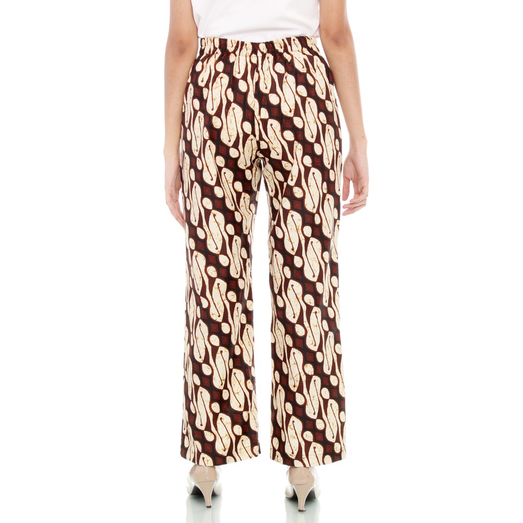 Benhill Celana Wanita Cullotes Plisket Batik Premium Tali Pinggang Karet Hitam Motif 809-36790