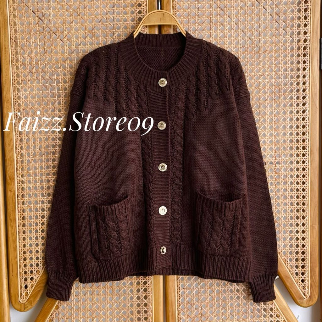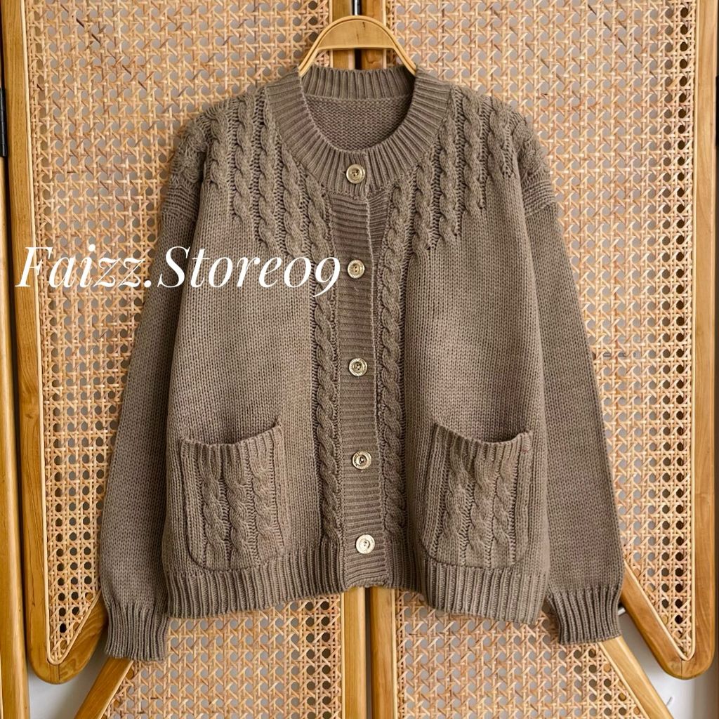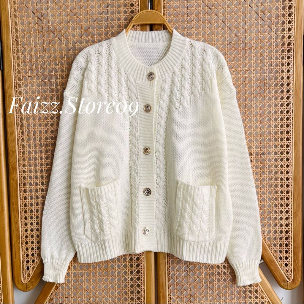 Teresia Cardy Knitwear - Outer Atasan Cardigan Rajut Kancing Saku Wanita Motif Cable Korean Style Premium